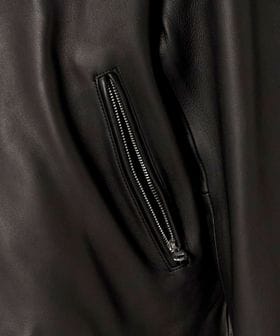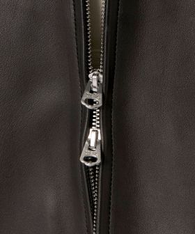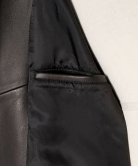 ディテールはすっきりと仕上げ、レザージャケット特有の硬さをやわらげたデザインです。