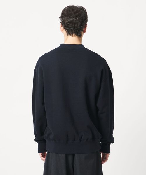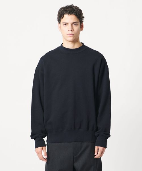 詰まったクルーネックに、程よくゆったりとしたボディが特徴のプルオーバー。