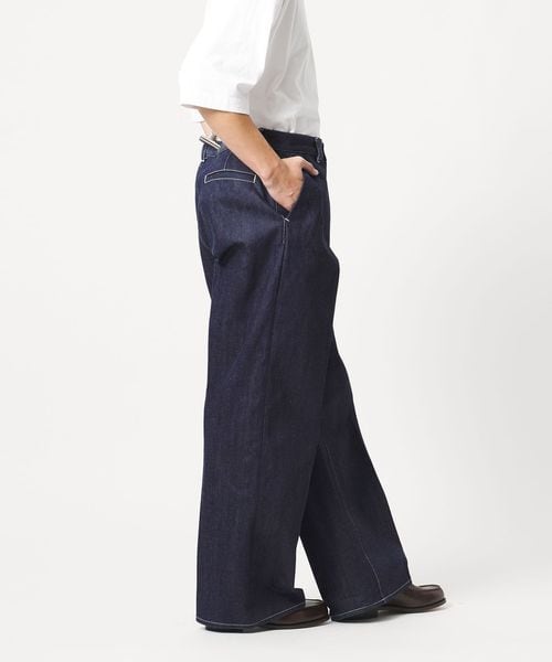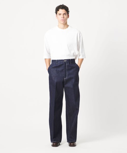 ゆったりとしたワイドテーパードシルエットが特徴のデニム。