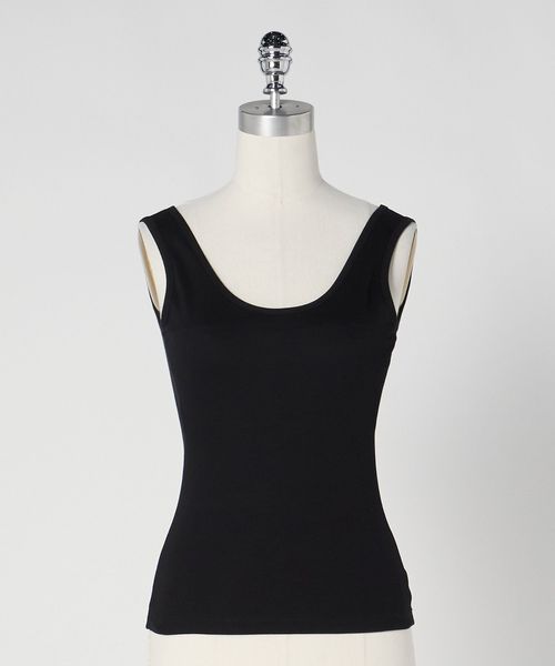 スポーティー過ぎない上品な襟ぐり開きが特徴のタンクトップ。