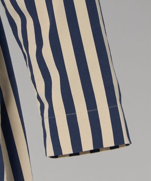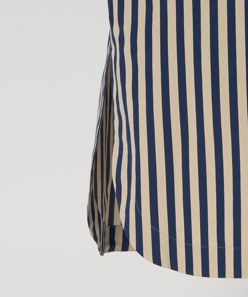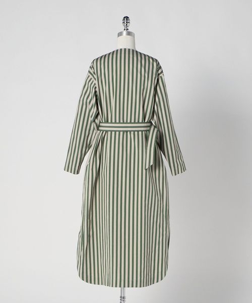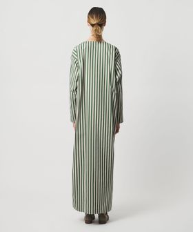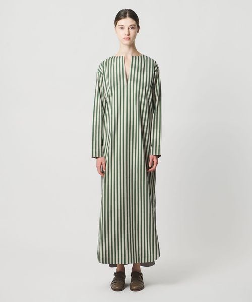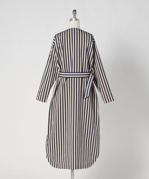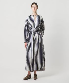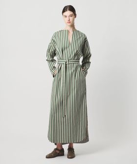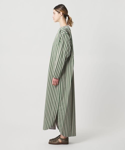 軽やかなスリットがつくる、動きのあるストライプシャツドレス