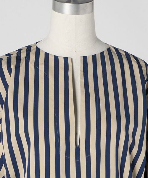 ゆったりとしたボディに、スリットネックと裾のサイドスリットが軽やかな印象のシャツドレス。