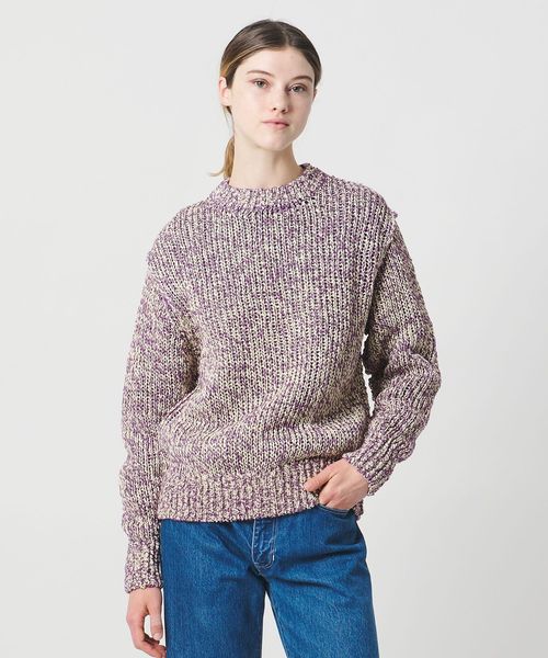 ゆったりめのサイズバランスで仕上げたシンプルなクルーネックニット。