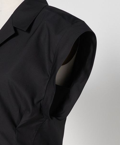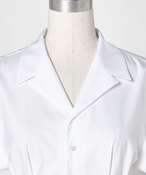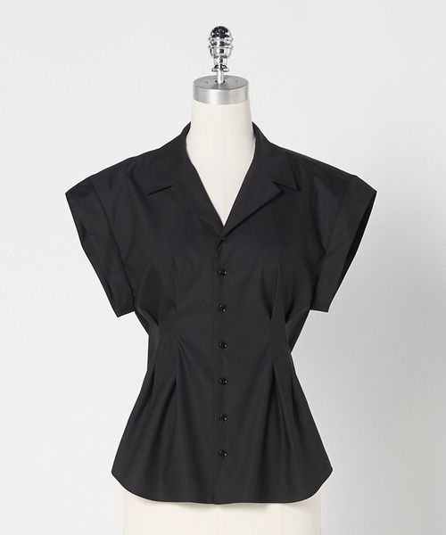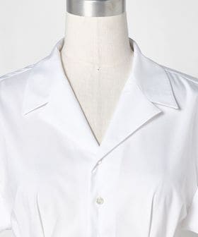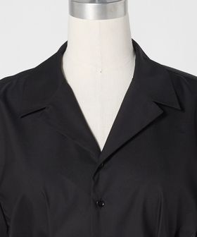 テーラードカラー気味の開襟デザインと、エイのように広がる肩まわりがポイントです。