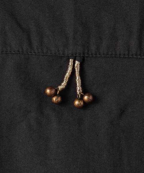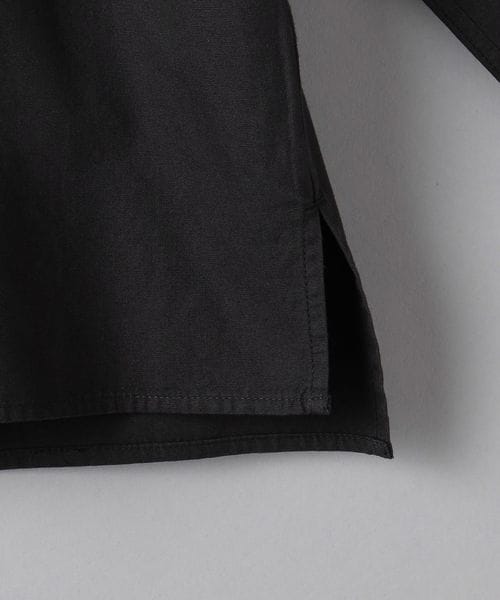 着替えをしやすくするため、全て前立て裏側にスナップをつけ、袖口はロールアップやブラウジングがしやすいよう、 カフスやボタンのない大きめの袖口にしています。
