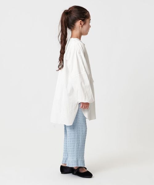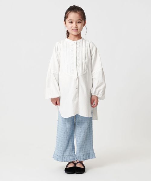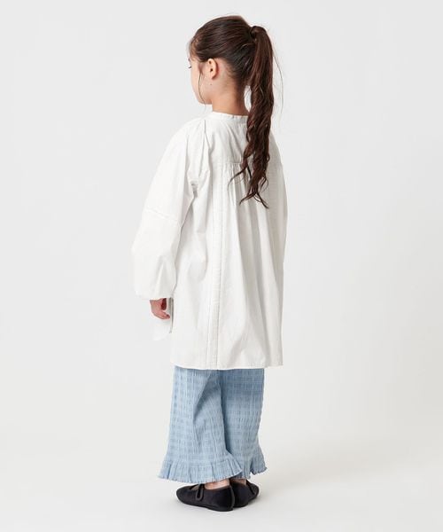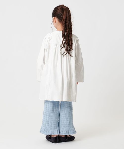 繊細なピンタックディテールが特徴のシャツワンピースに、”背守り”を施したキッズだけの特別仕様。