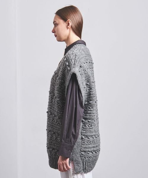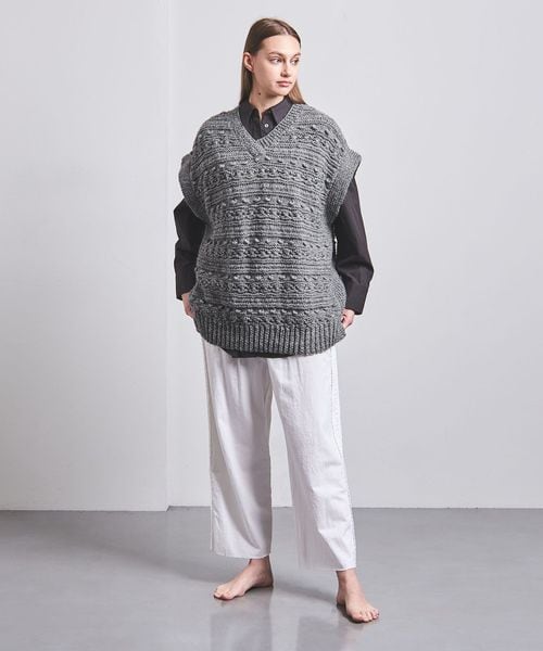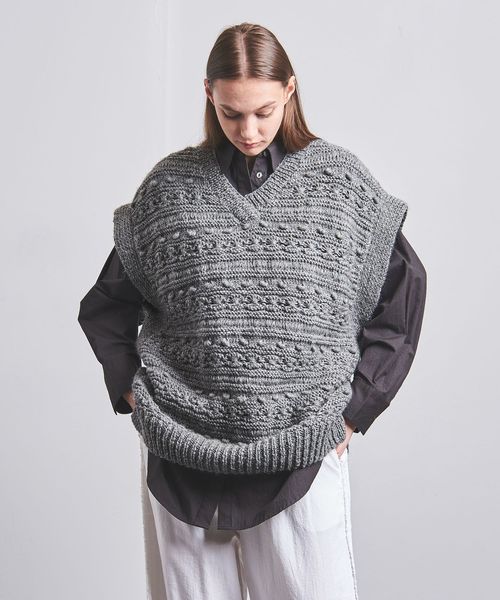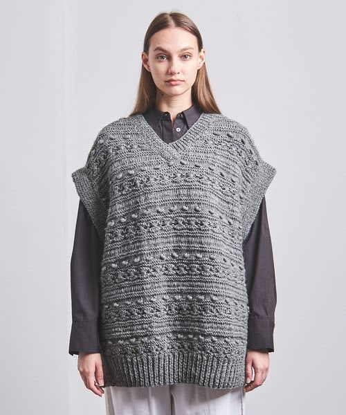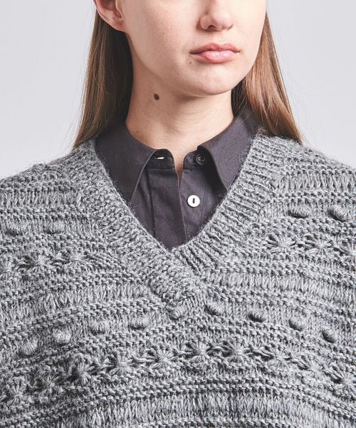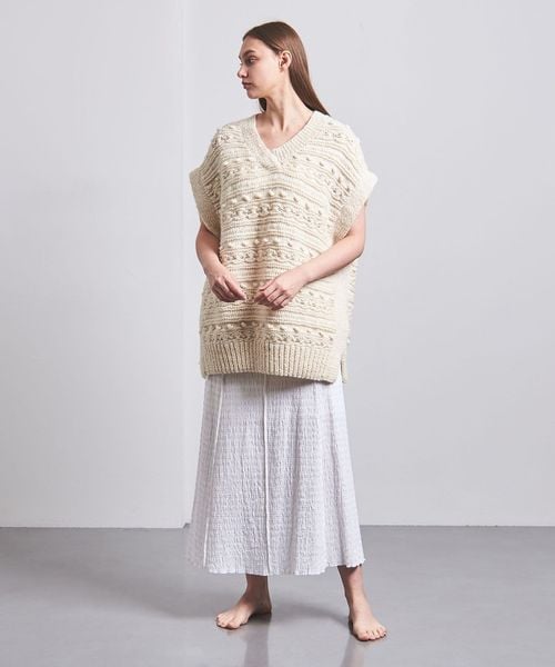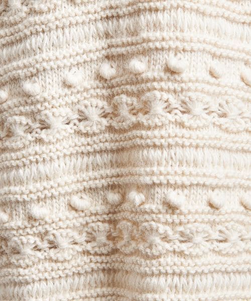これまで布帛で作製してきた繊細なレースやタックの表情を新たにニットで表現し、さまざまな細かい編み柄を組み合わせました。