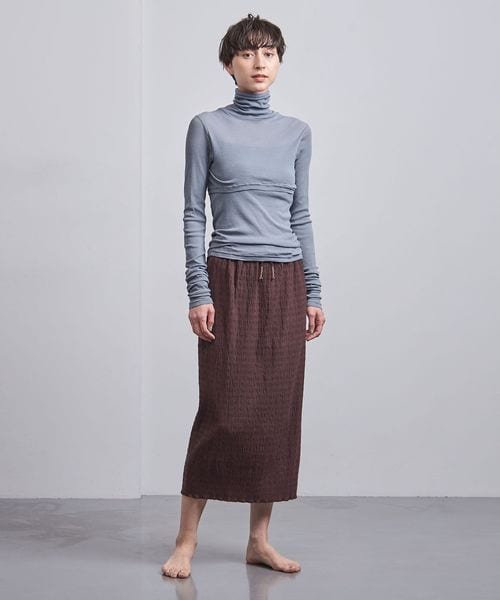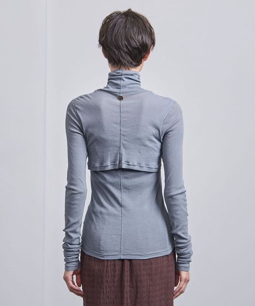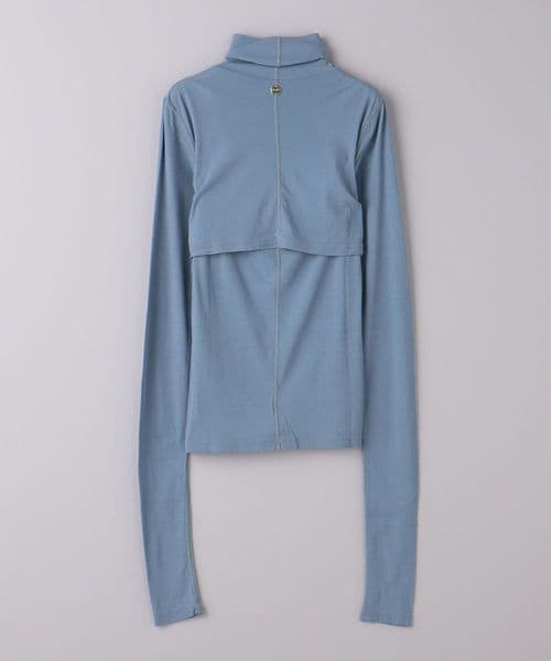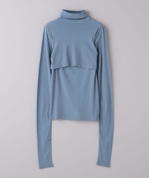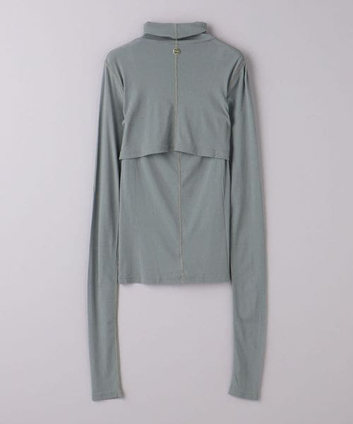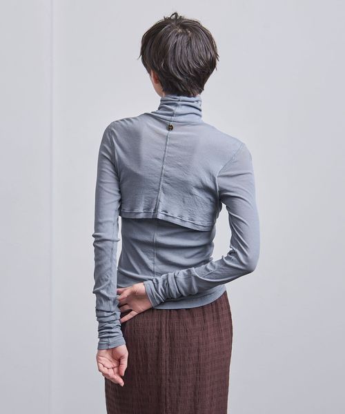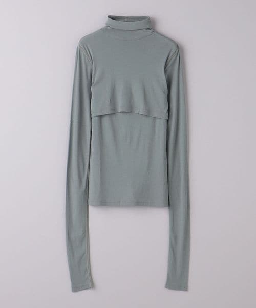 シアーな表情が美しい、レイヤードデザインのタートルネックカットソー。