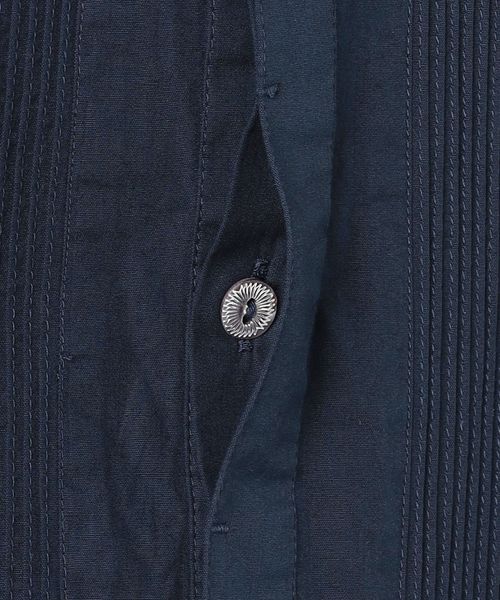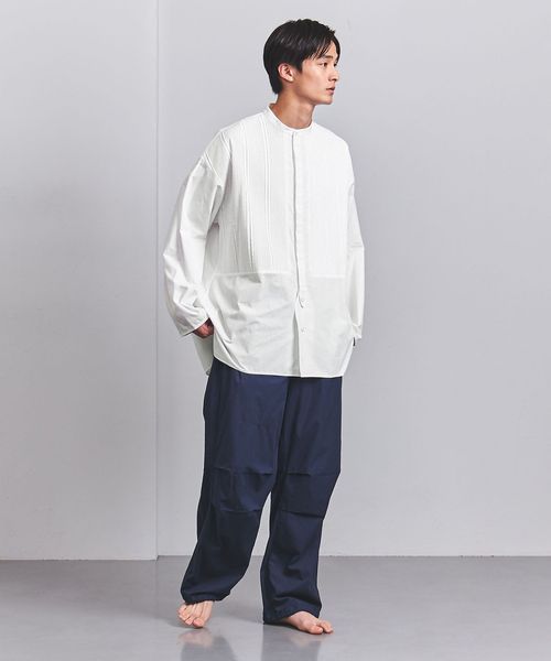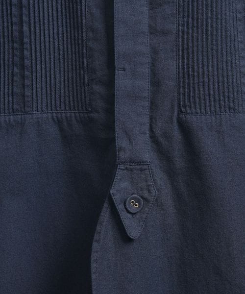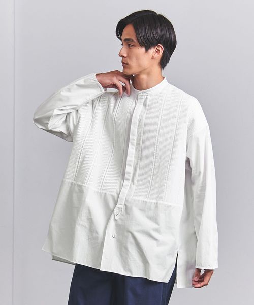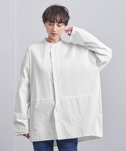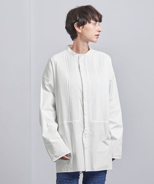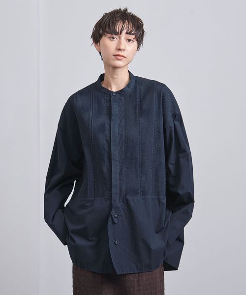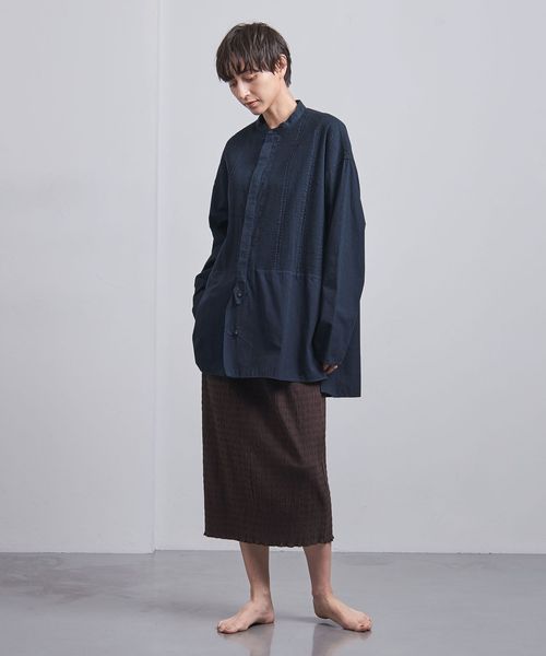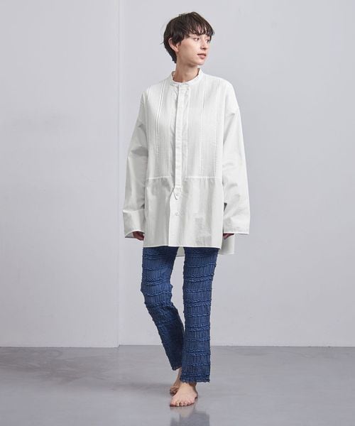 胸回りの生地を切り替えたメンズのフォーマルなブザムシャツを、女性の日常に組み入れたシリーズ「Trinity」