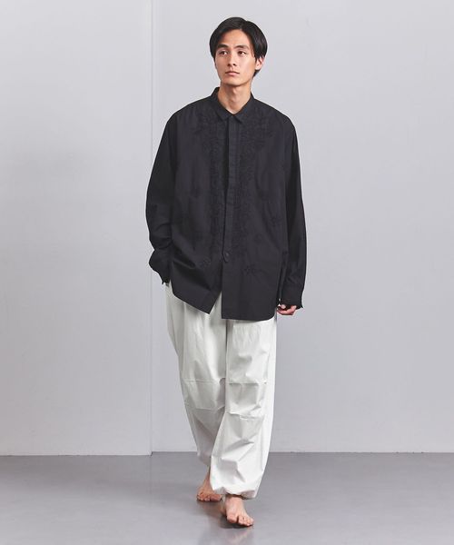 胸回りの生地を切り替えたメンズのフォーマルなブザムシャツを、女性の日常に組み入れたシリーズ「Trinity」