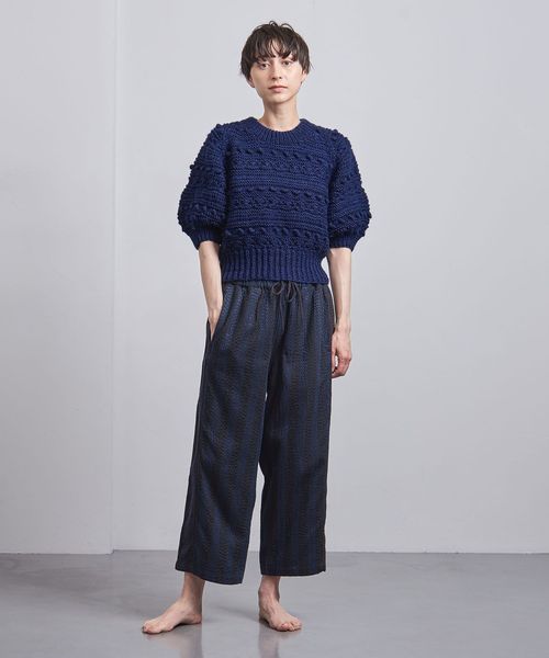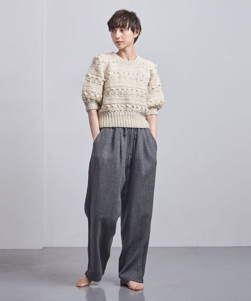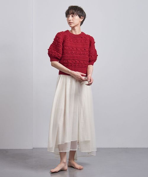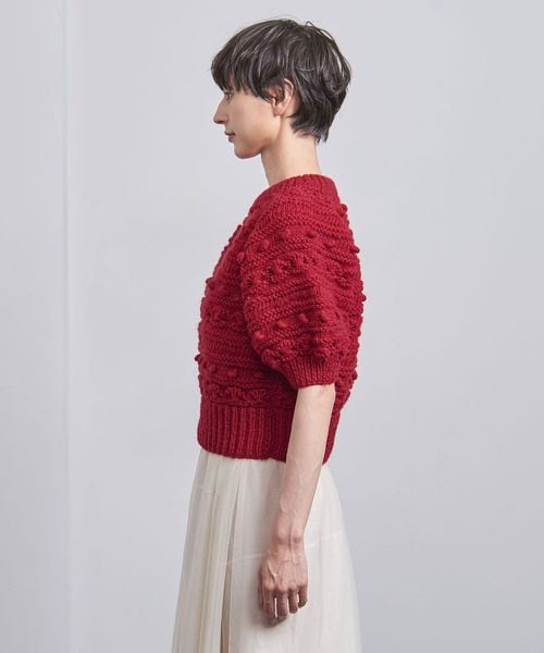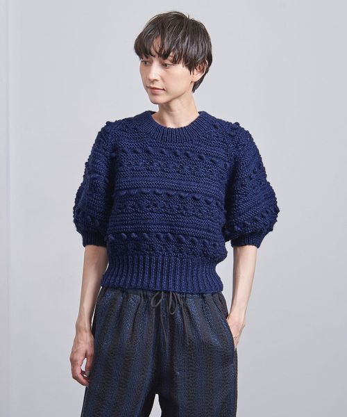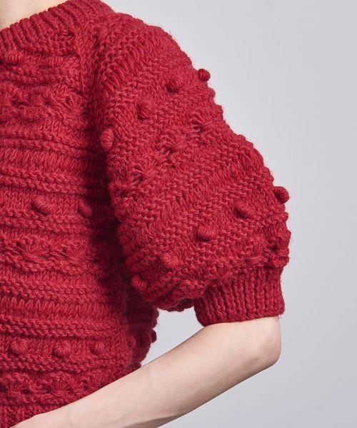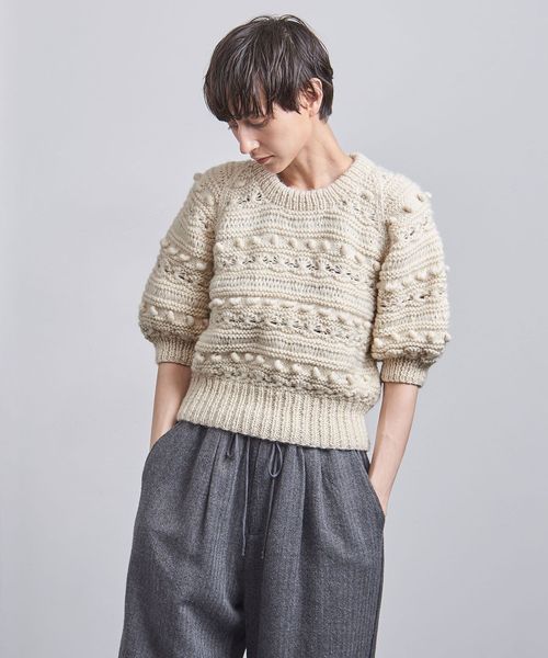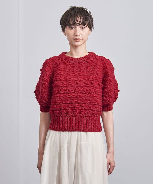 立体感を出したボリューム袖が素材とのメリハリをつけたショートスリーブニット。
