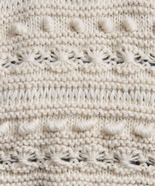 これまで布帛で作製してきた繊細なレースやタックの表情を新たにニットで表現し、さまざまな細かい編み柄を組み合わせました。