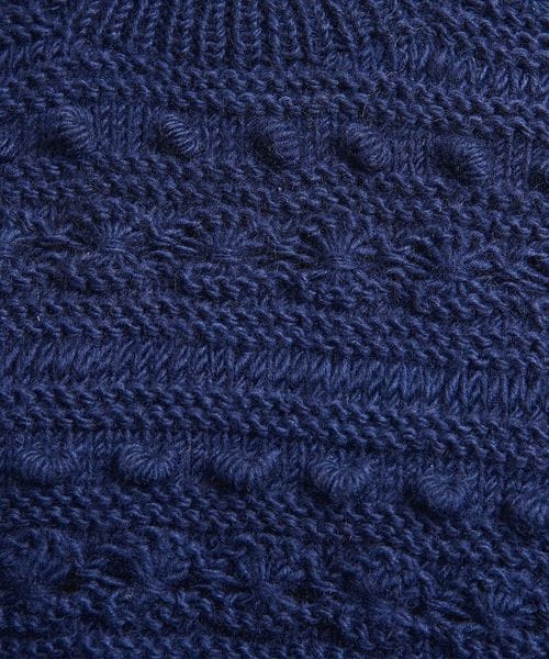 インドの原毛をネパールで紡績し、1点1点手編みしたハンドニットです。
