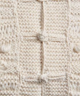 これまで布帛で作製してきた繊細なレースやタックの表情を新たにニットで表現し、さまざまな細かい編み柄を組み合わせました。
