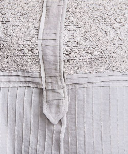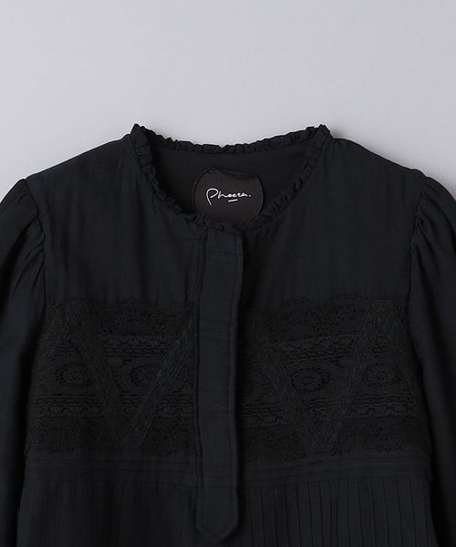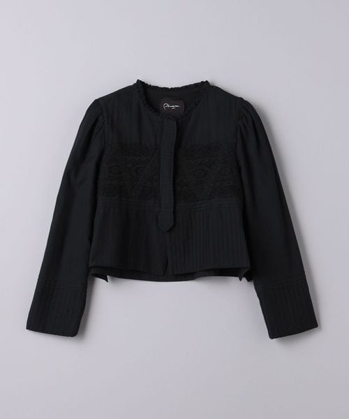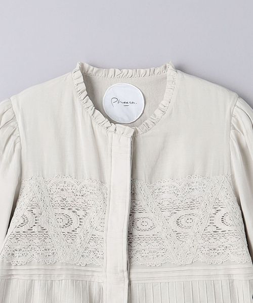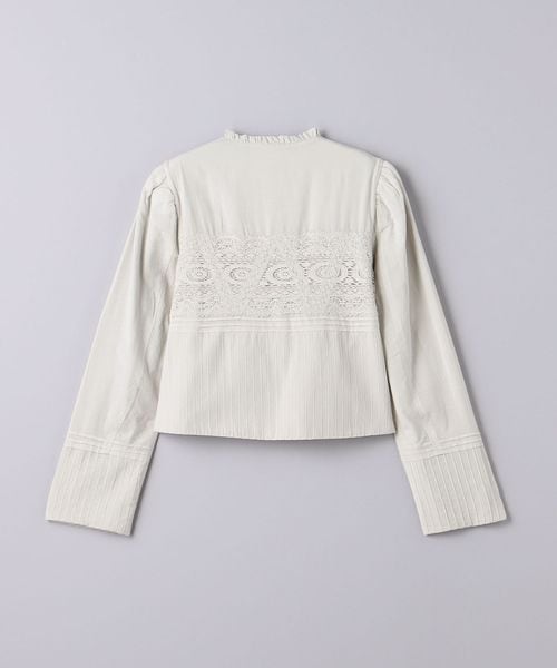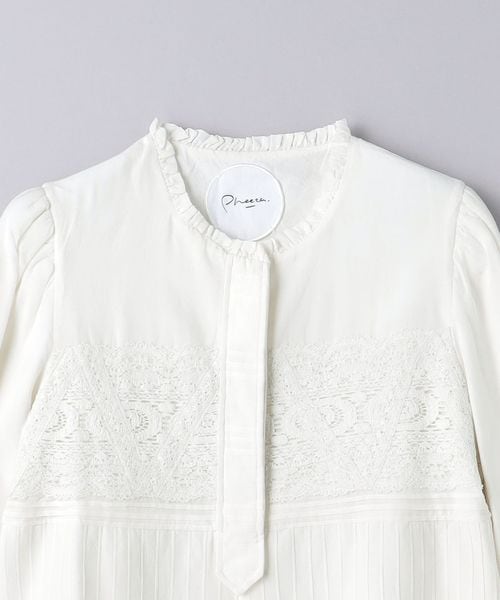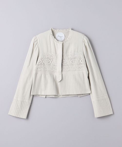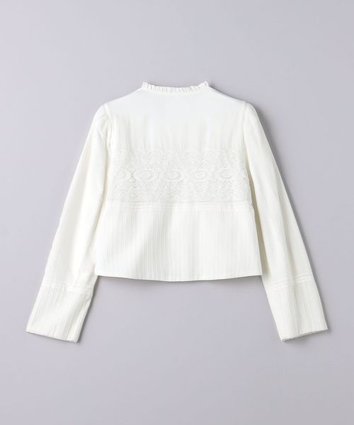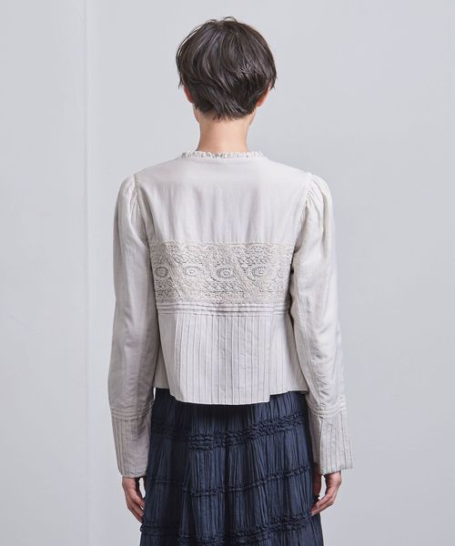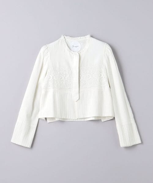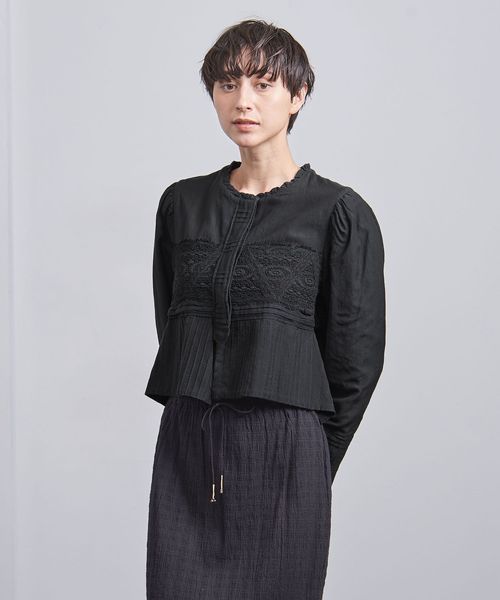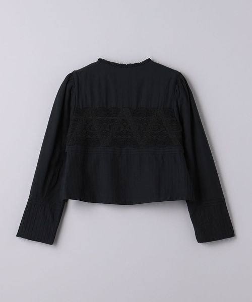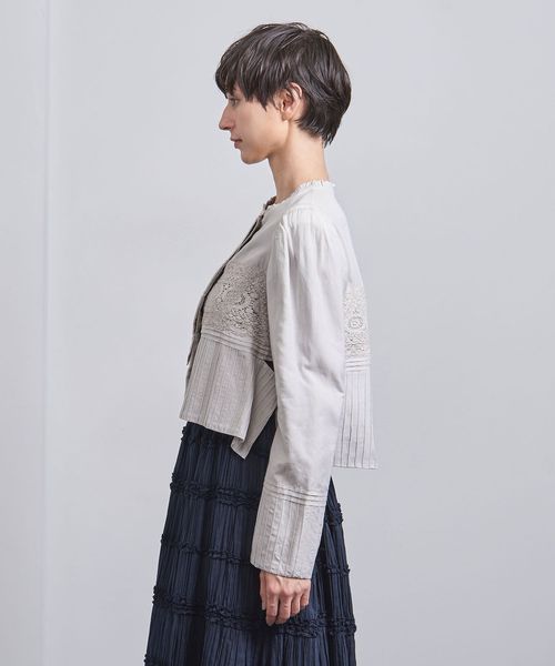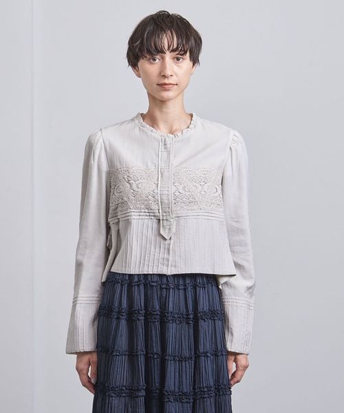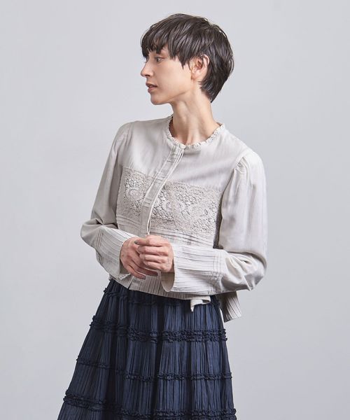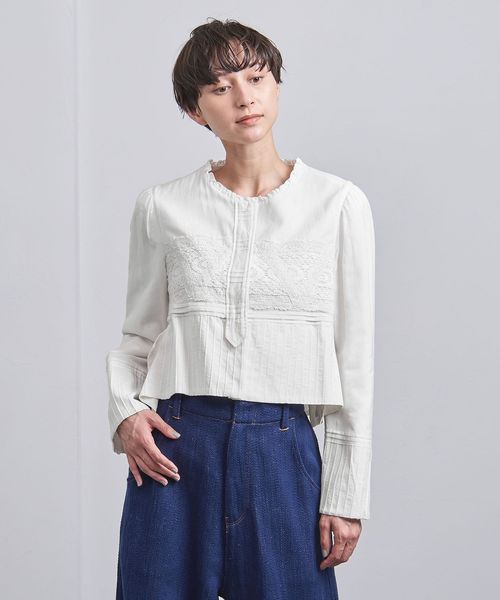リバーレースを贅沢にあしらった短めの丈のブラウス。