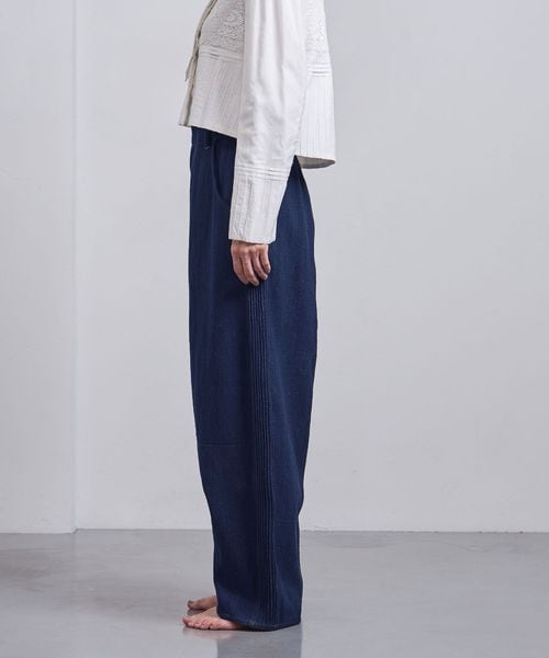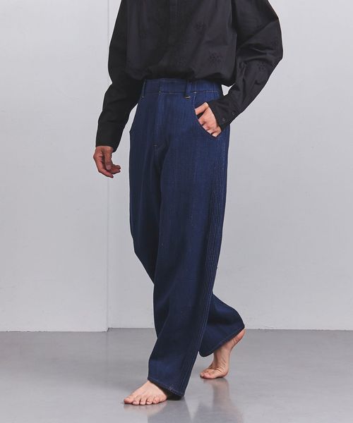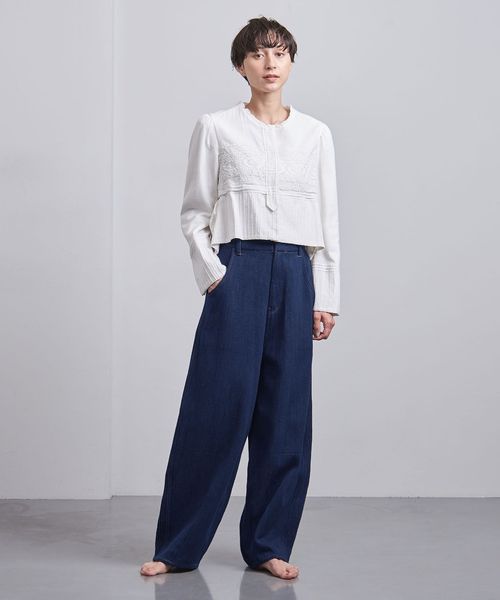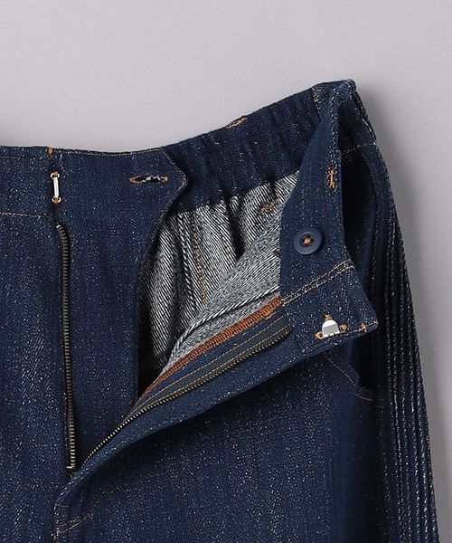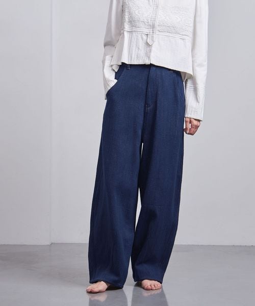 手織り素材のデニムならではの、柔らかさと手触りの良さを活かしボリュームのあるシルエットに仕上げています。