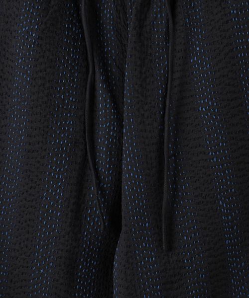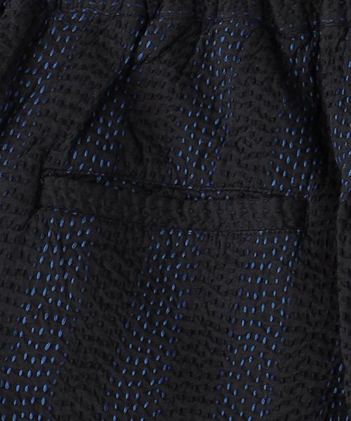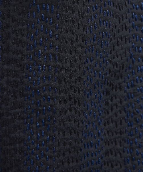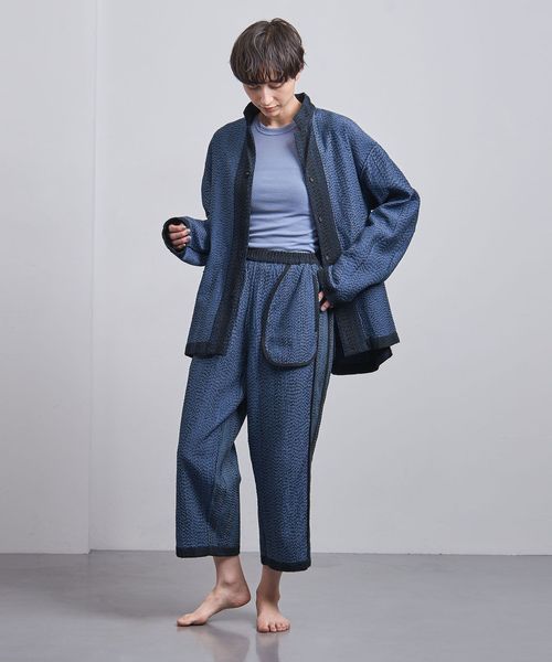 2枚の生地を重ねて、カンタと呼ばれるインドの刺子を、3色の糸を使い手刺繍で全面に施しています。