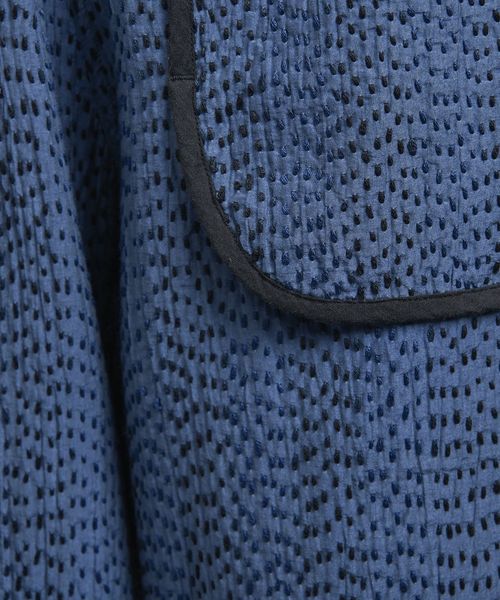 全面に、針と糸のみで一針一針刺繍していく「カンタ」と呼ばれる手仕事を施し、繊細な表情が贅沢に活かされた一枚です。