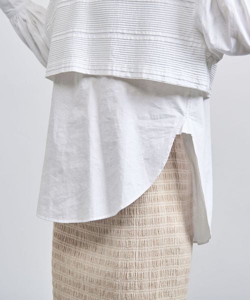 ピンタック部分を2重の生地にすることで立体感を出したシャツ。