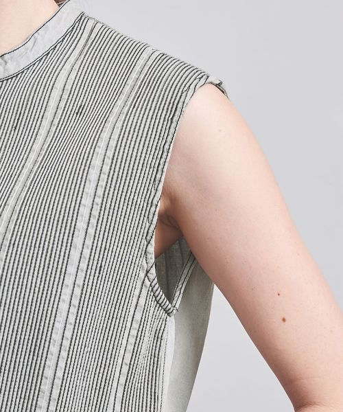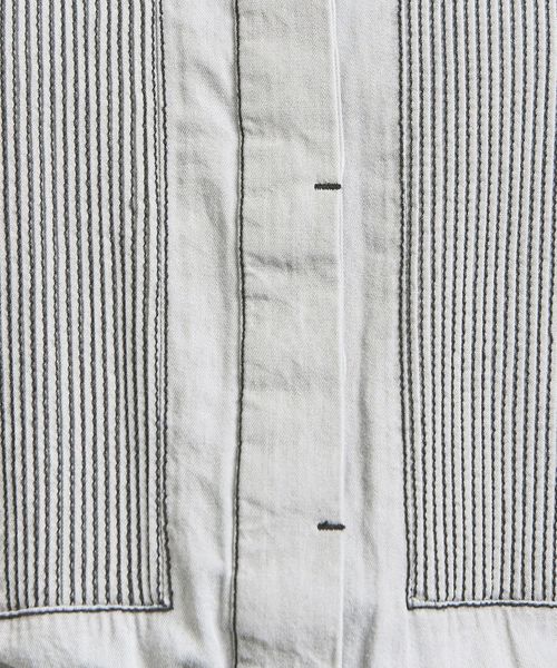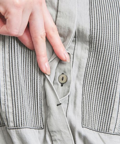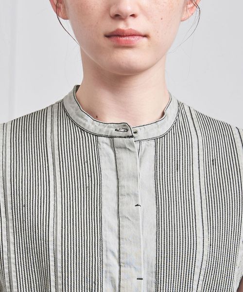 胸回りの生地を切り替えたメンズのフォーマルなブザムシャツを、女性の日常に組み入れたシリーズ「Trinity」