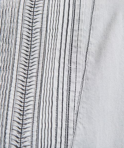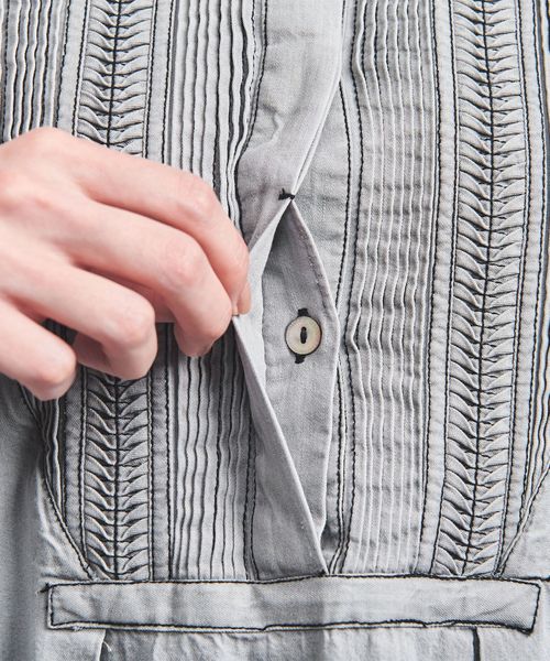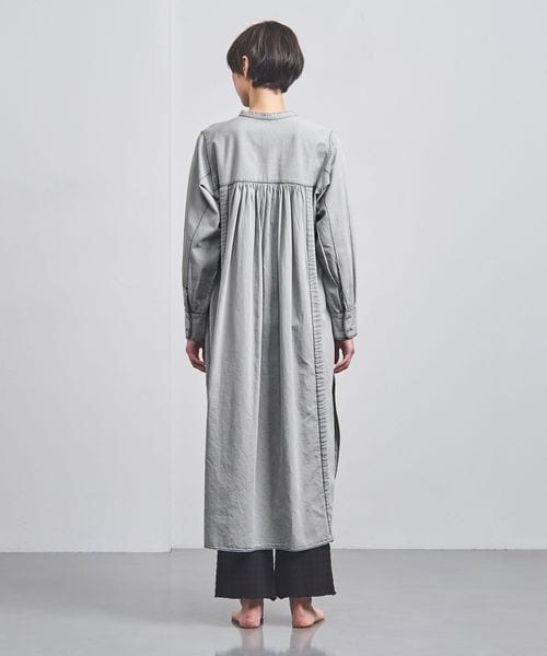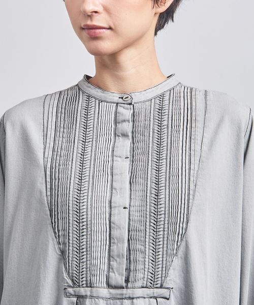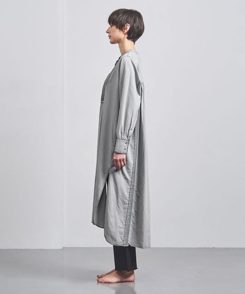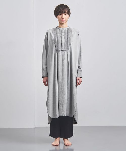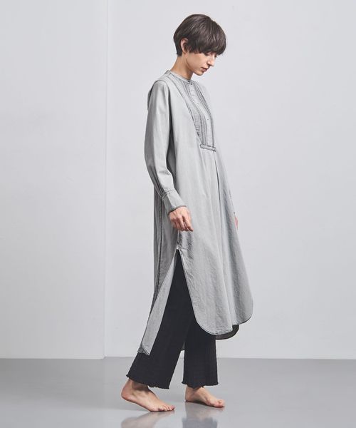 ゆったりとしたシルエットながら、バンドカラーを採用することで清潔感と気品を感じられる一着。