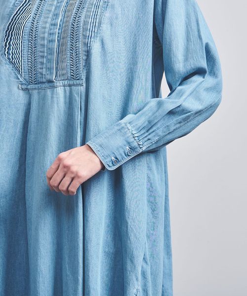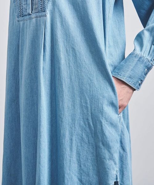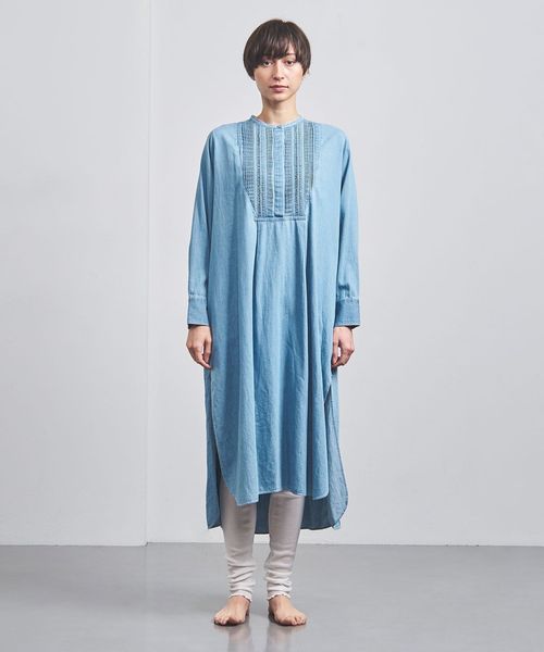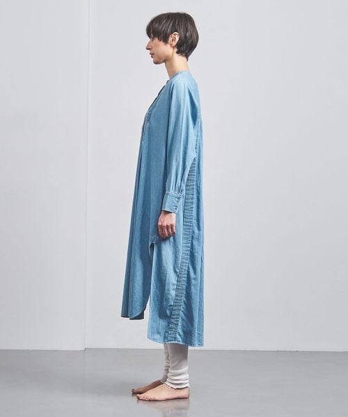 ゆったりとしたシルエットながら、バンドカラーを採用することで清潔感と気品を感じられる一着。