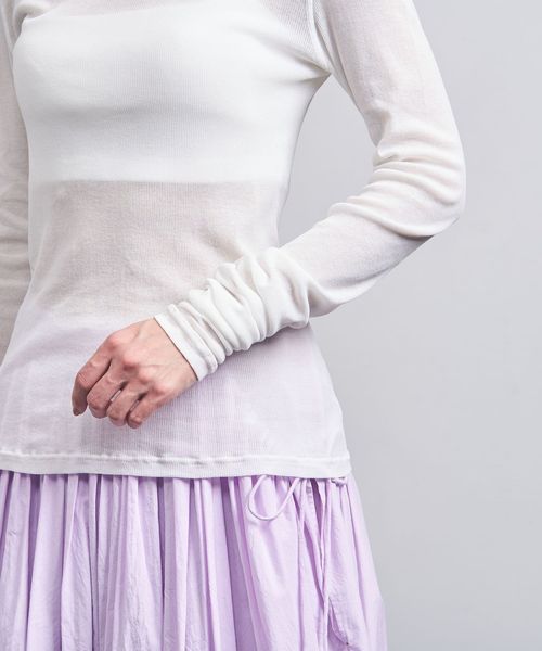 透け感を活かした一枚着としての装いや、シャツやニット、スウェットなどのインナーに合わせて、さまざまなレイヤードスタイルに活躍します。