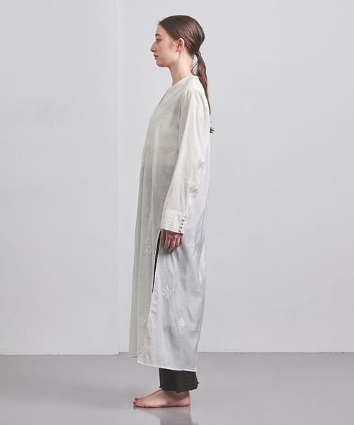 シアーな質感と深めのサイドスリットが入ったリラクシーなシルエットは、パンツとのレイヤードが様になる一着。