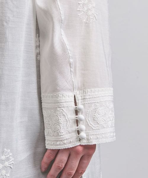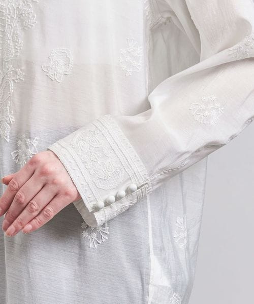 生地はオーガンジーを使用し、刺繍の美しさをより一層引き立てる張りと透け感が特徴です。