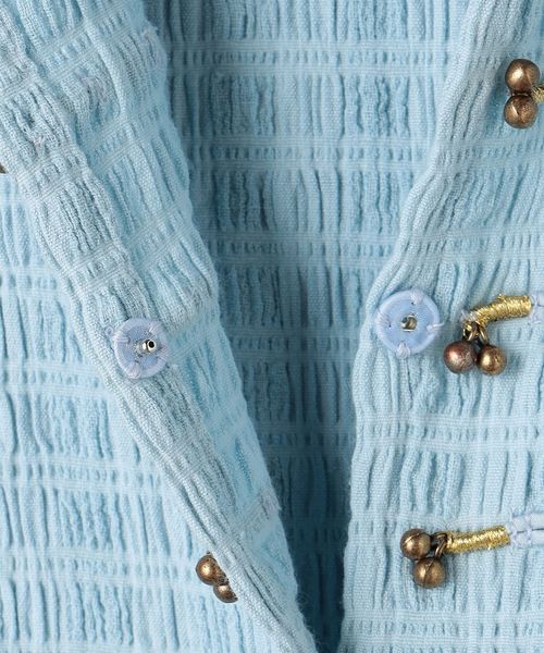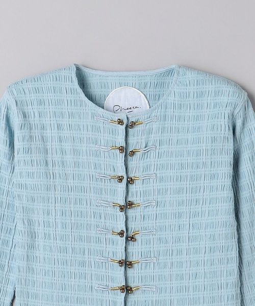 フロントはスナップボタン仕様となっており、インドの伝統的なZari(ザリ)と呼ばれる金糸とチャームがあしらわれております。