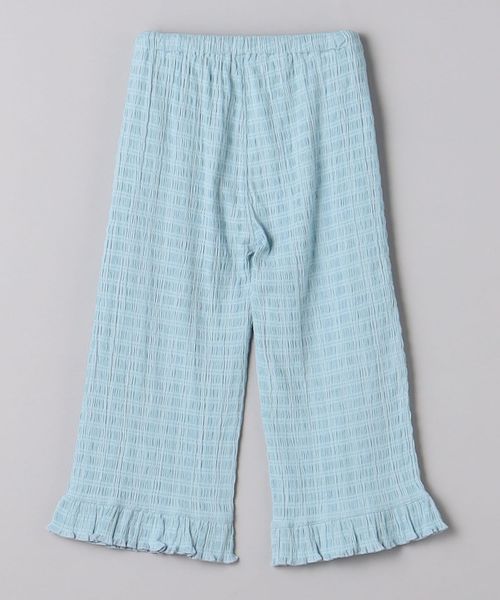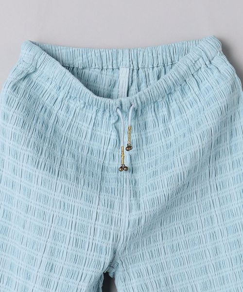 裾のフリル部分とウエストの紐先にはインドの伝統的なZari(ザリ)と呼ばれる金糸とチャームをあしらいました。