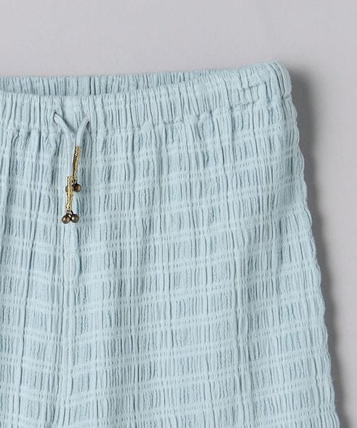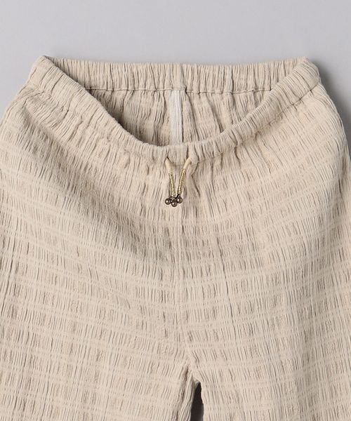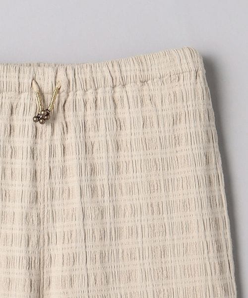 また、綿糸に麻を少し加え、生地表面に陰影をつけて織り上げることで、同色のシャドーチェックが浮かび上がるように仕立てました。