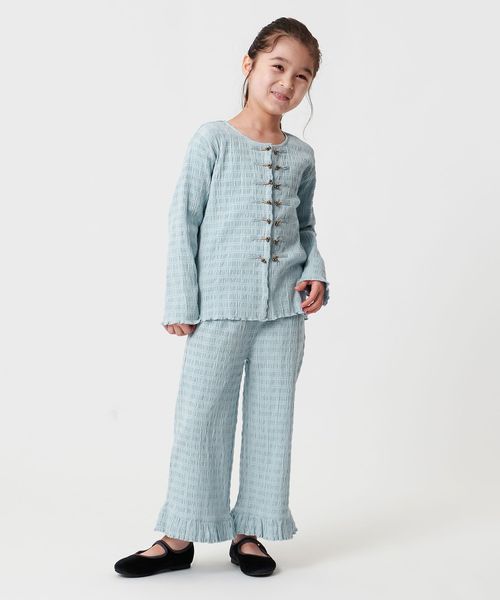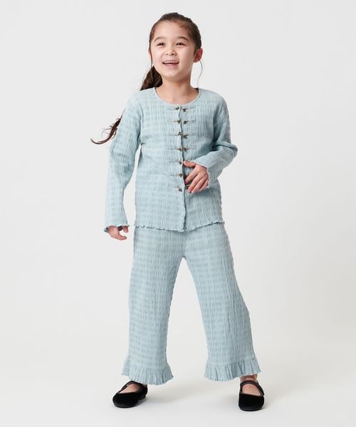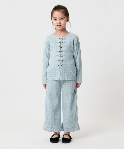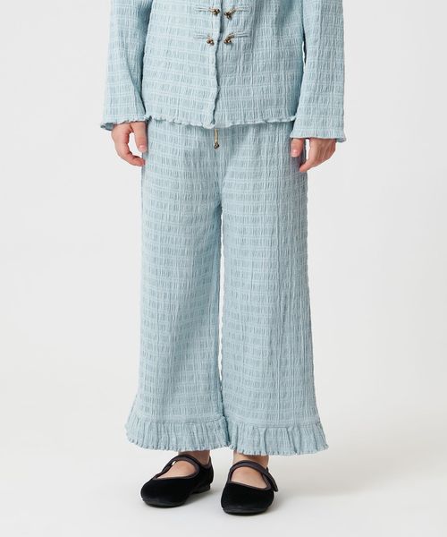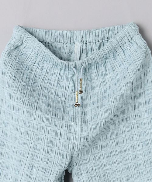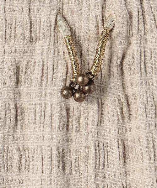裾のフリル部分とウエストの紐先にはインドの伝統的なZari(ザリ)と呼ばれる金糸とチャームをあしらいました。