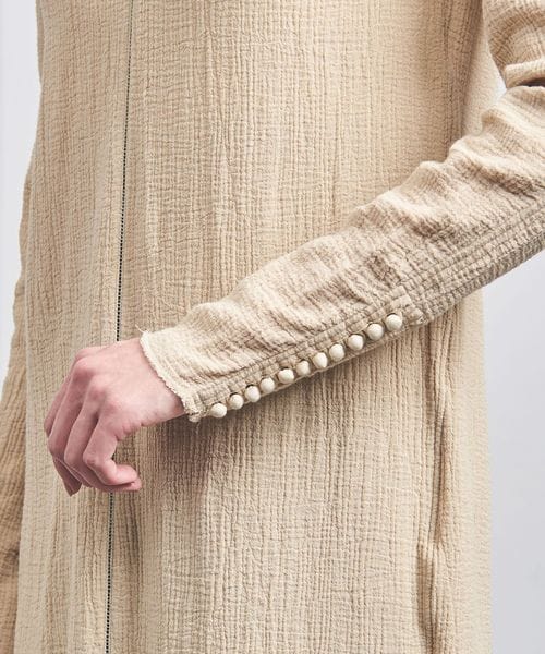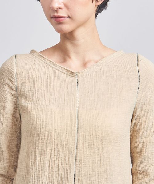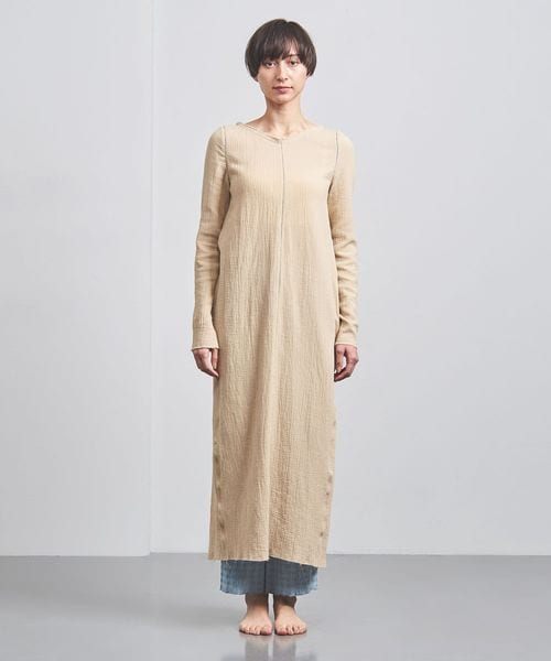 綿ガーゼを楊柳に仕上げ、この伸び縮みを活かすことで、体に沿った心地いいシルエットが特徴です。