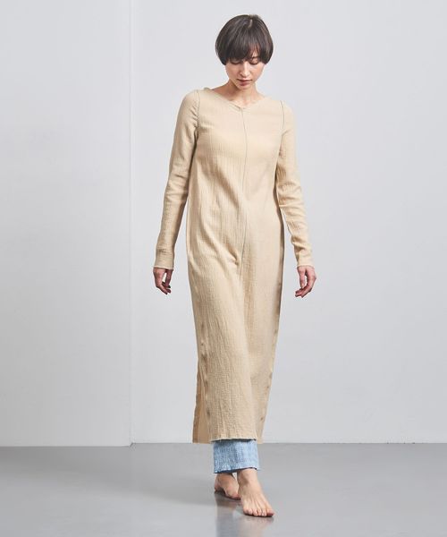 深めのスリットを施したデザインは、さまざまなボトムレイヤードをお楽しみいただけます。