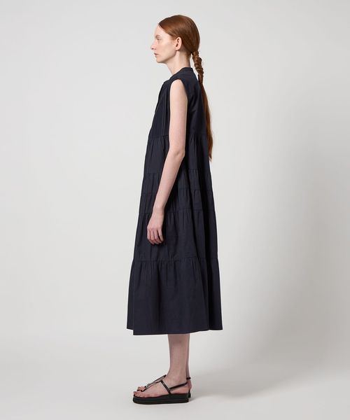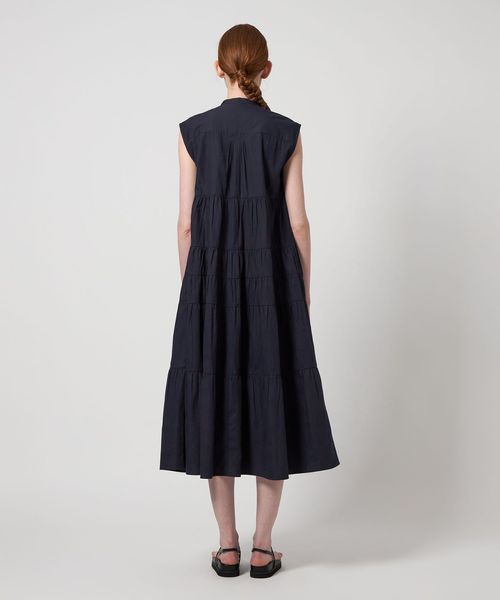 丁寧な手仕事のピンタックに、贅沢に生地を使用したティアードドレスをノースリーブに別注したアイテムです。