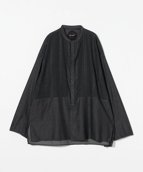 切り替えた胸元のディテールは、本来のブザムシャツの美意識を踏襲し、丁寧な手仕事のピンタックで表現しています。