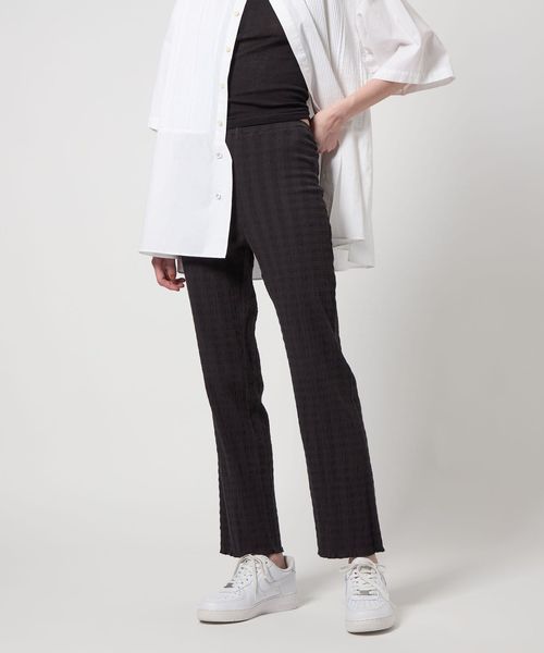 伸びのある素材感に加えて、ウエスト周りもゴム仕様のリラックスしたはき心地でデイリーに活躍します。
