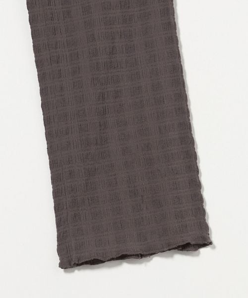 また、綿糸にリネンを少し加え、生地表面に陰影をつけて織り上げることで、同色のシャドーチェックが浮かび上がるように仕立てました。
