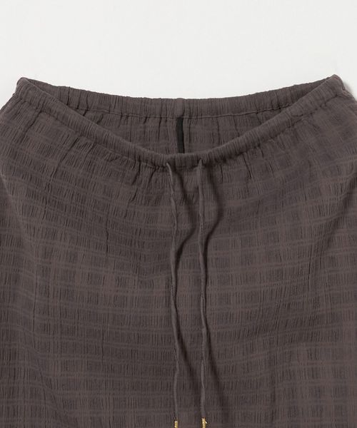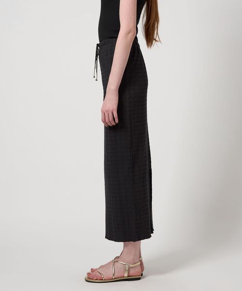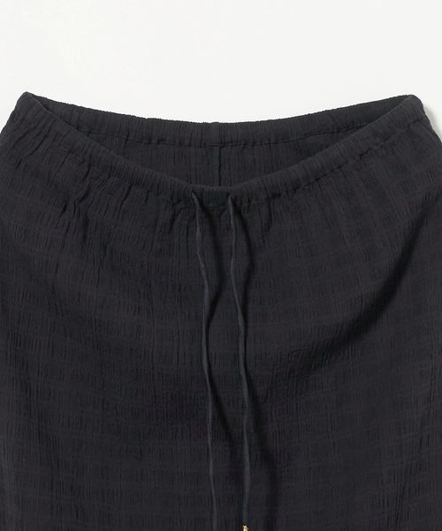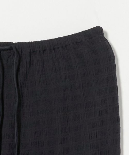 伸びのある素材感に加えて、ウエスト周りはゴム仕様&ドローコードでリラックスしたはき心地が魅力。