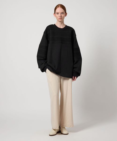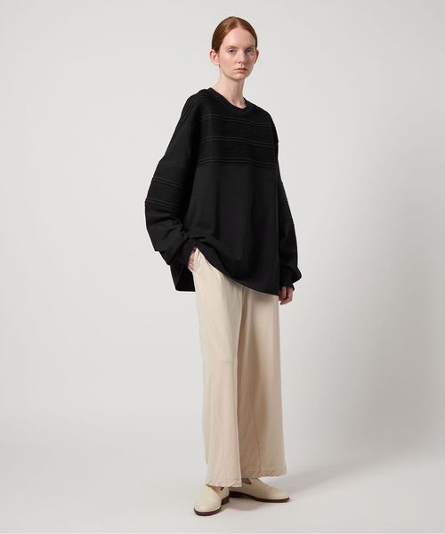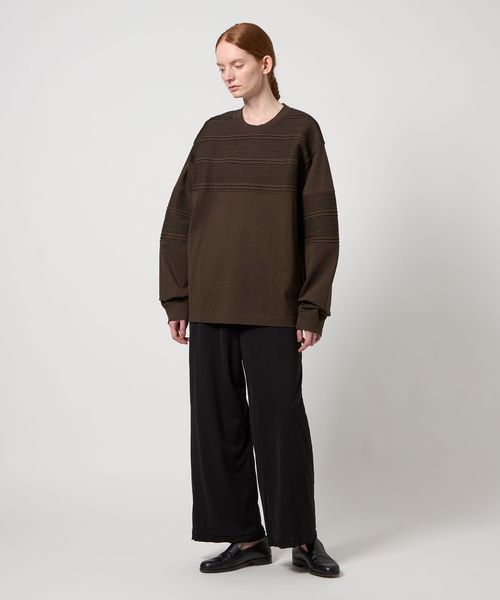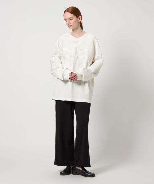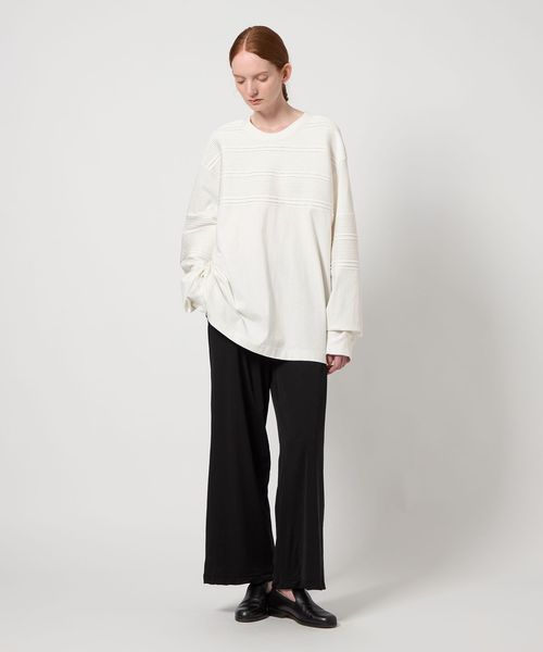 カットソー本来の扱いやすさを活かしながら、繊細な手仕事をあしらうことで品格と実用性を備えた一着に仕上げました。