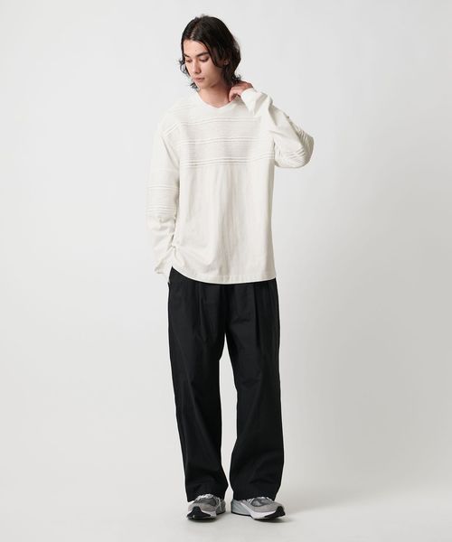 ゆとりのあるシルエットを活かした細身パンツ合わせから、ワイドパンツと合わせたルーズな着こなしなど幅広くコーディネートを楽しめます。