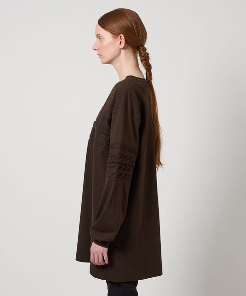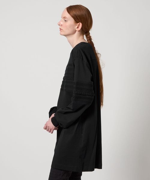 カットソー本来の扱いやすさを活かしながら、繊細な手仕事をあしらうことで品格と実用性を備えた一着に仕上げました。