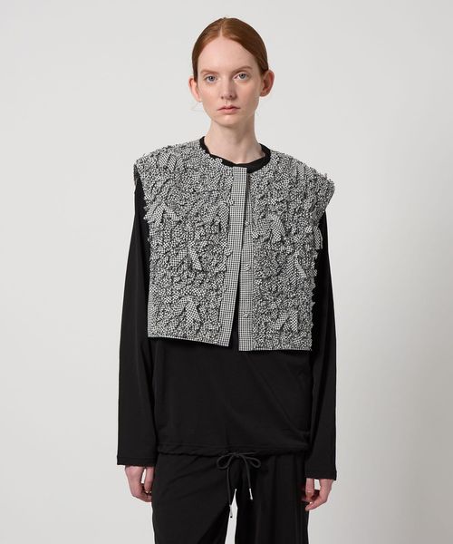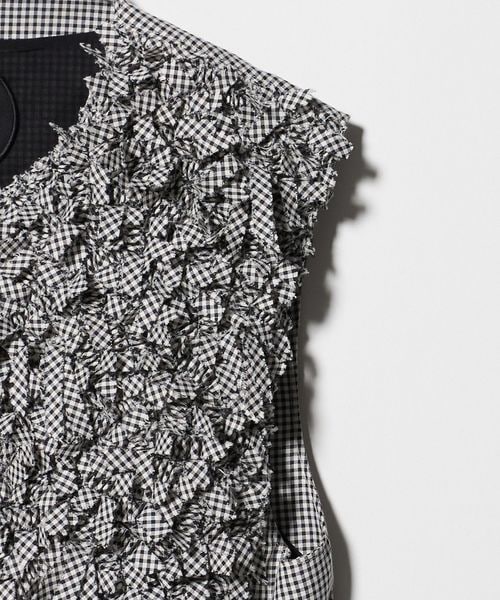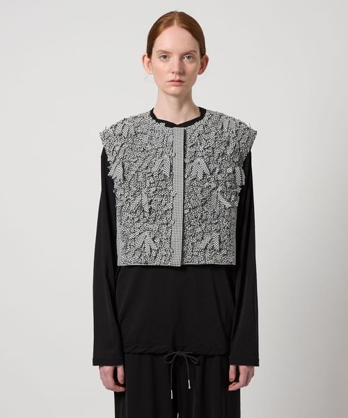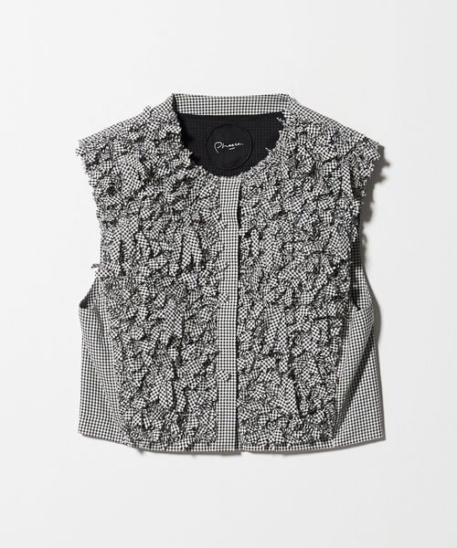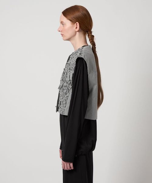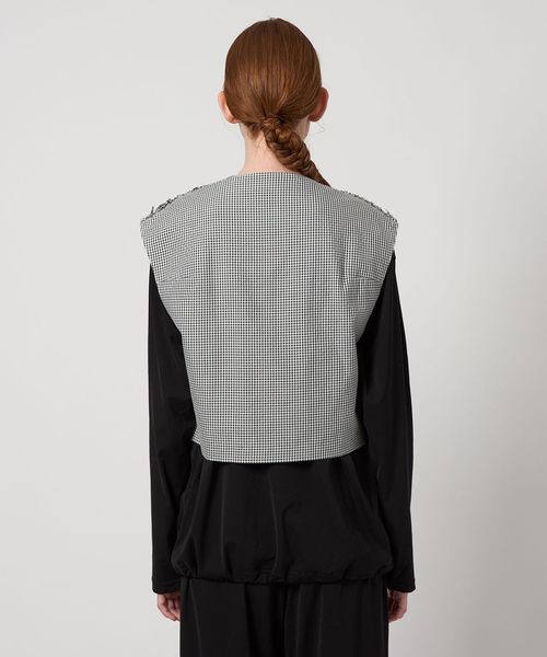 フロントの刺繍が存在感のあるチェック柄のベスト。