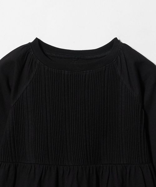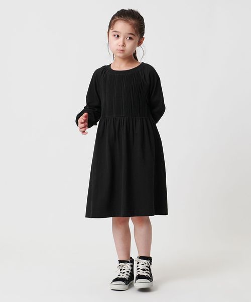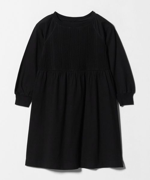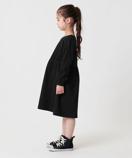 前身頃にピンタックを配したシンプルなロングスリーブワンピース。