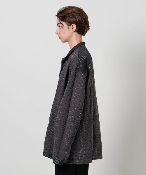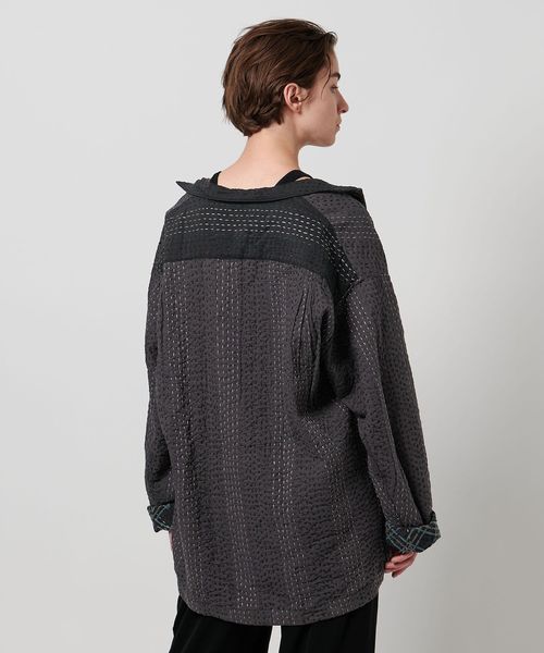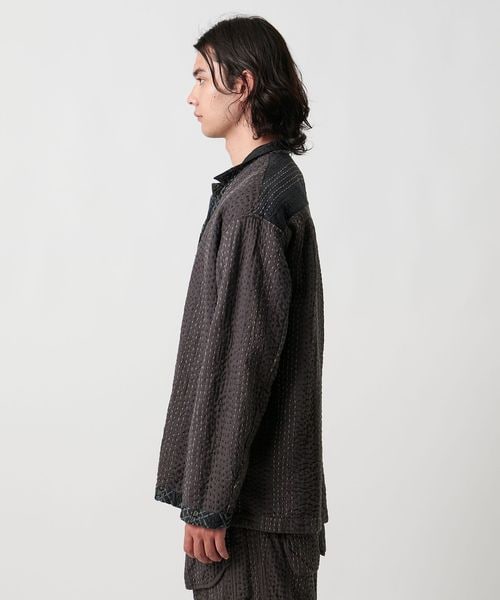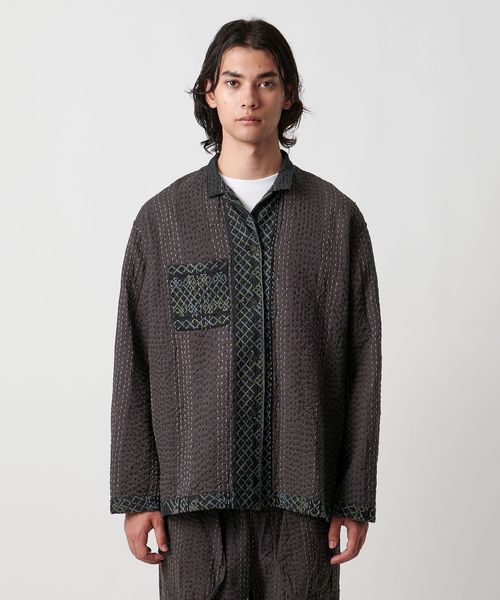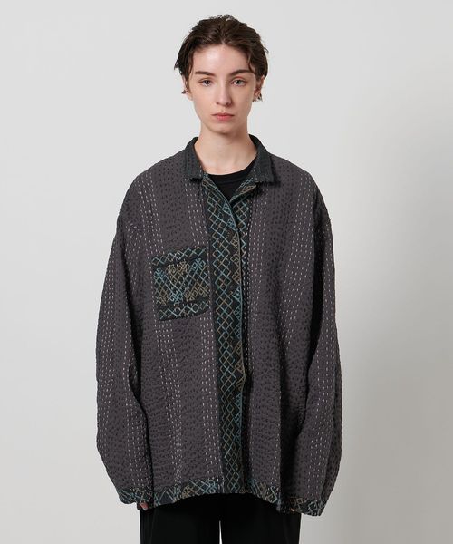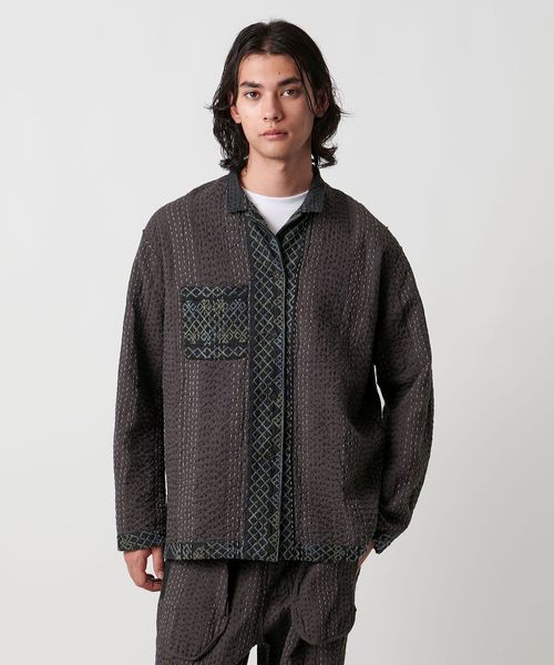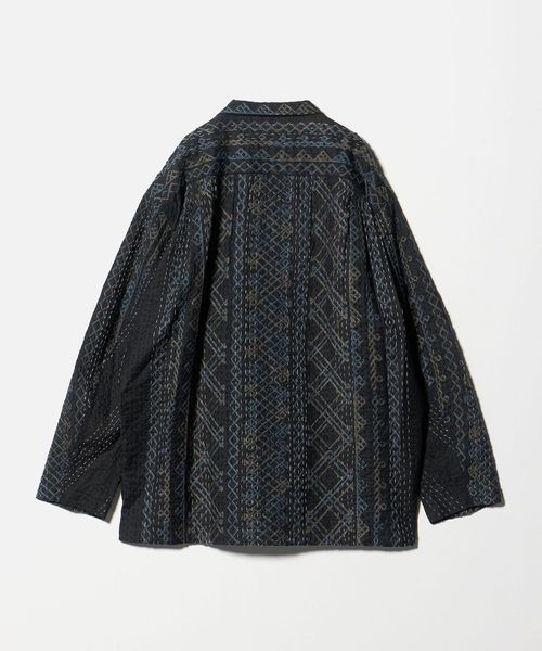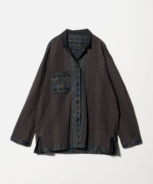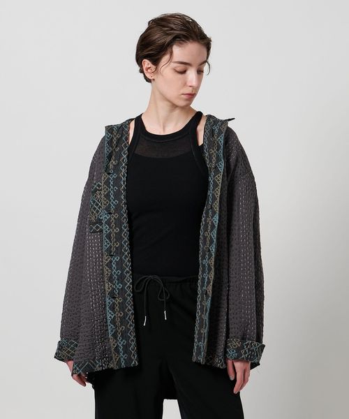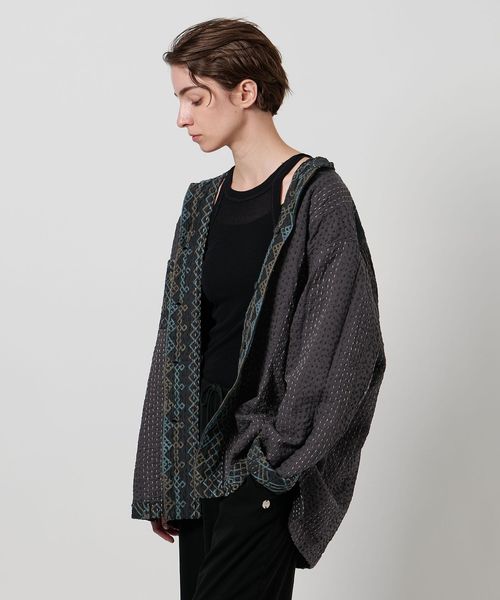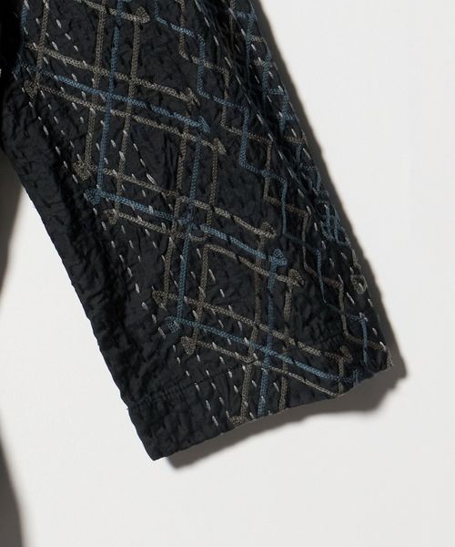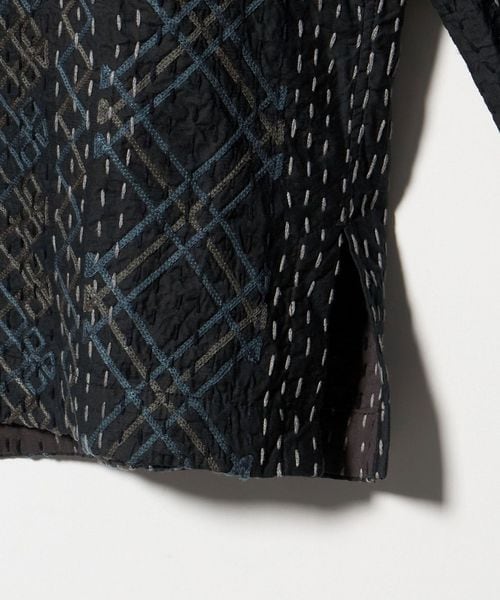 針と糸のみで一針一針刺繍していく、インド最古の刺繍技法のひとつ「カンタ」と呼ばれる手仕事を施し、繊細な表情が贅沢に活かされた一枚。