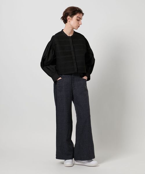 シンプルでシルエットがきれいに見える、ゆるやかなフレアシルエットのパンツ。