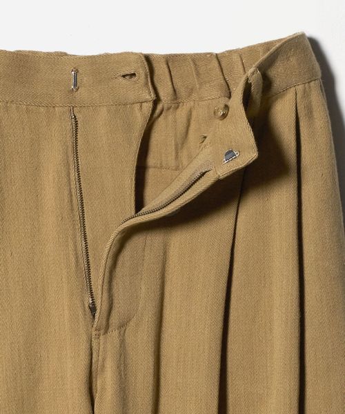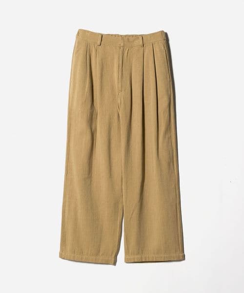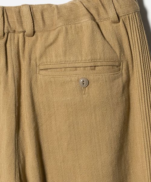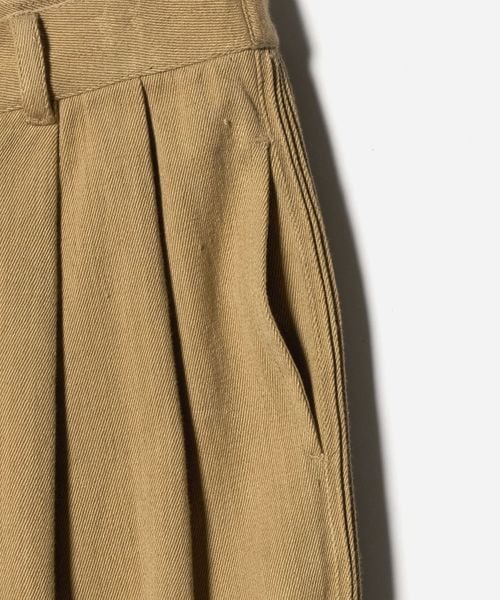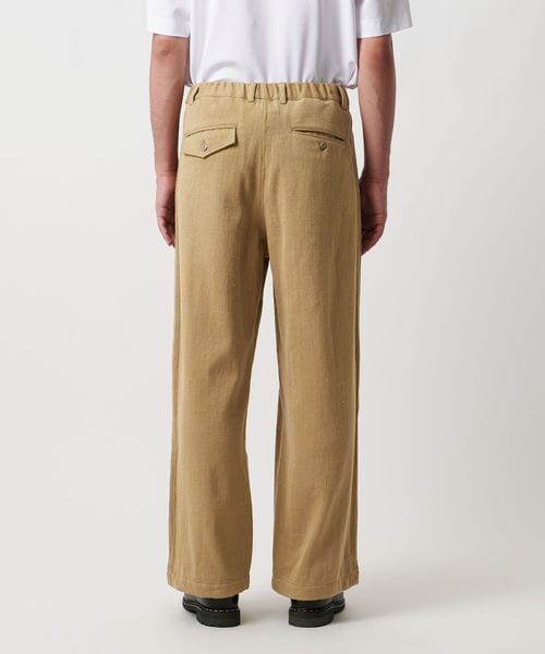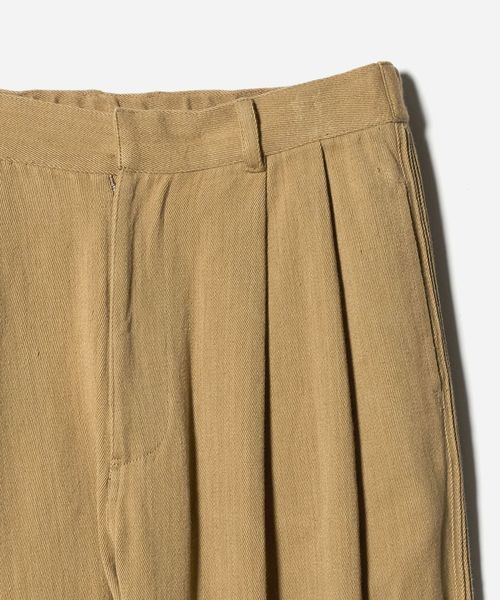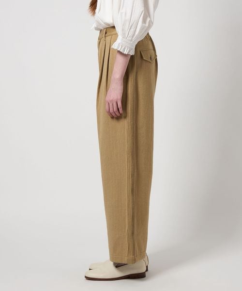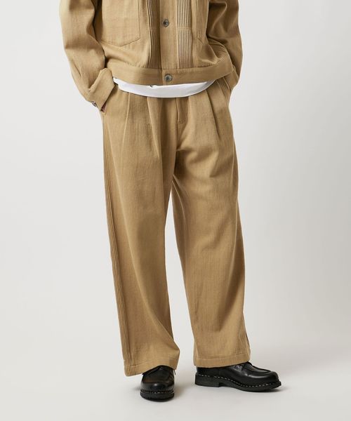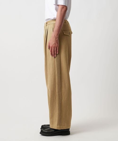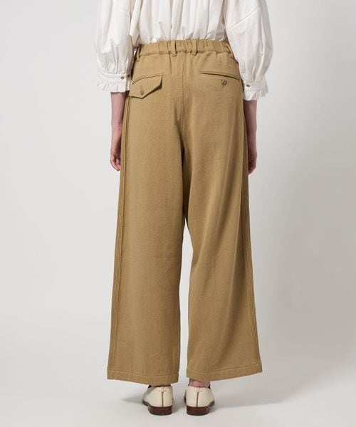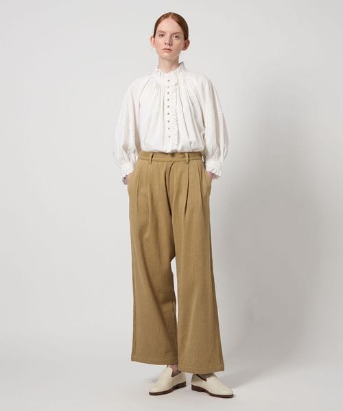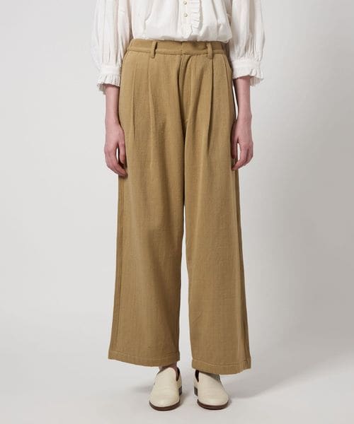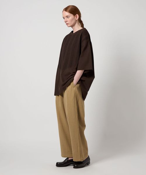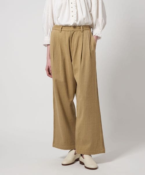 サイドにピンタックをあしらい、甘織の手織り生地の風合いが活きる、ゆったりとしたシルエットが特徴。