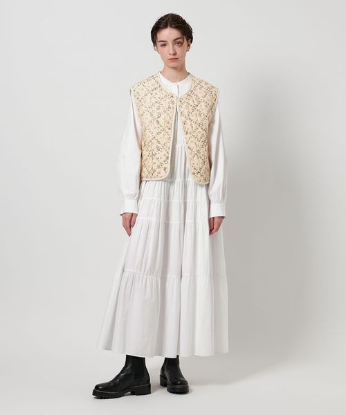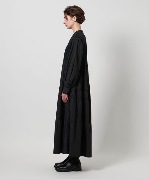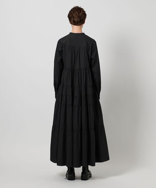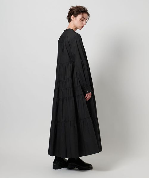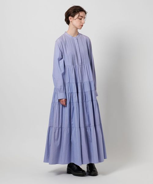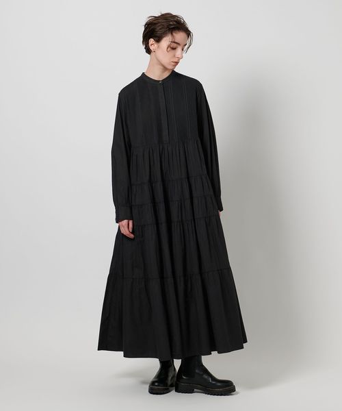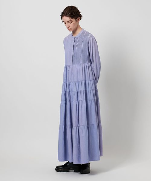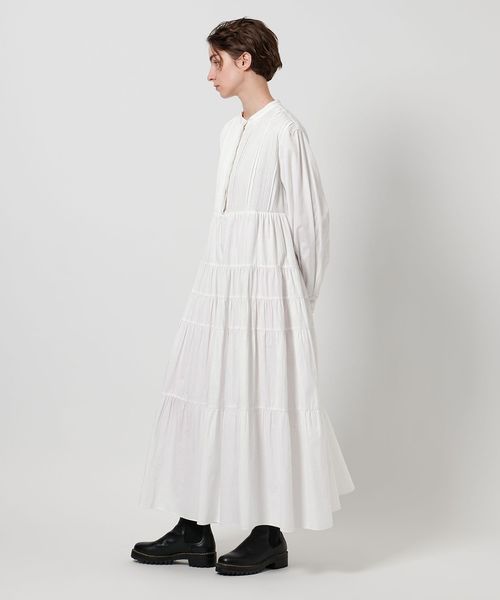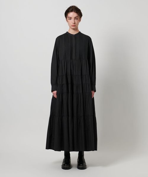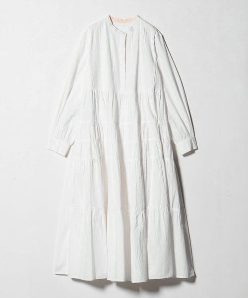 丁寧な手仕事のピンタックに、贅沢に生地を使用したティアードワンピース。