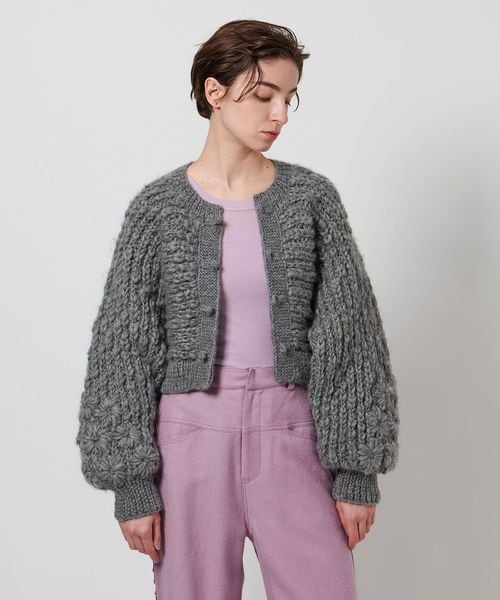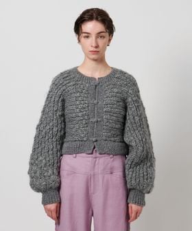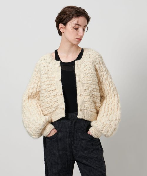 丸みを帯びた袖シルエットがフェミニンな雰囲気のショート丈カーディガン。
